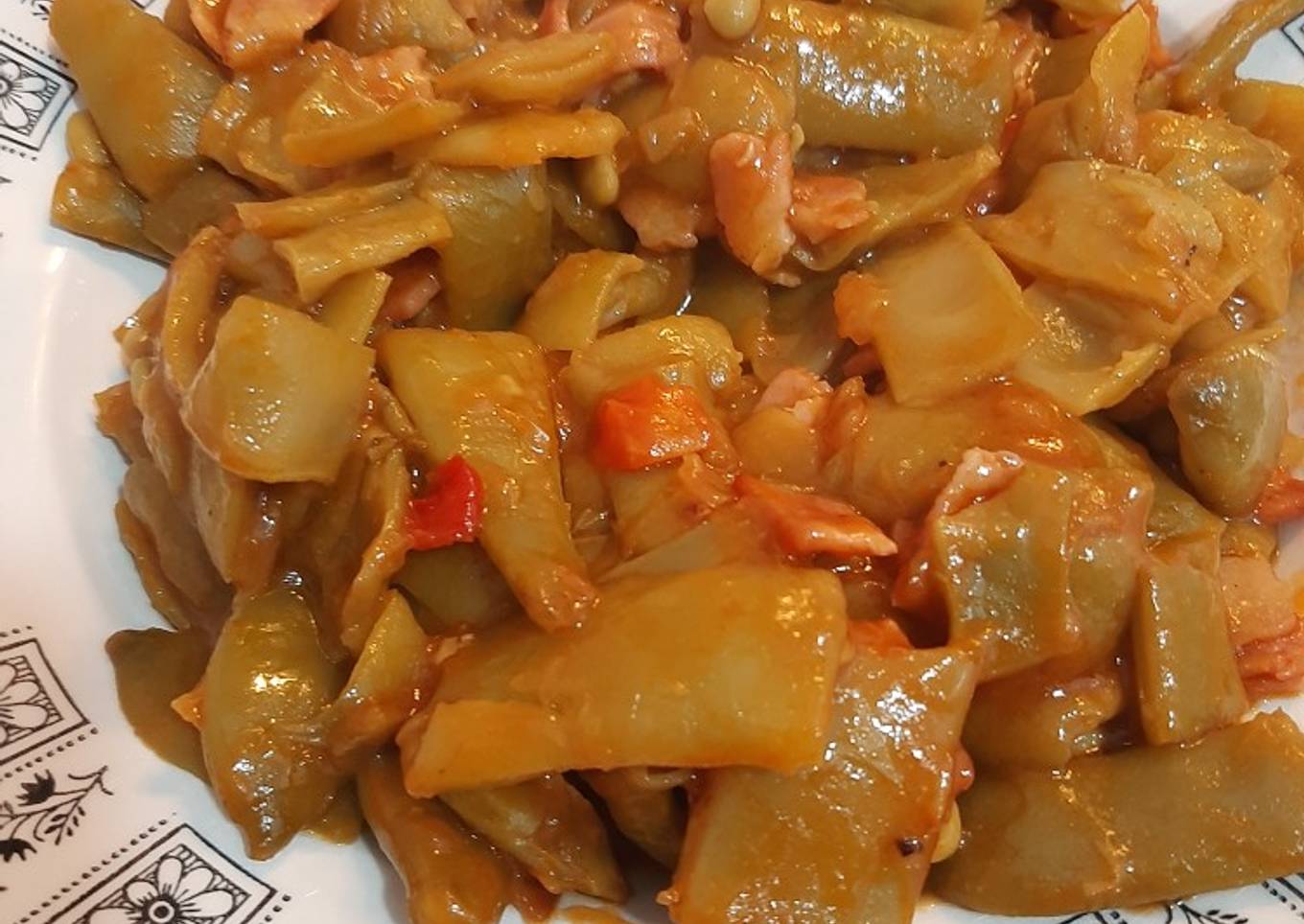 Judías verdes con bacon y verduras