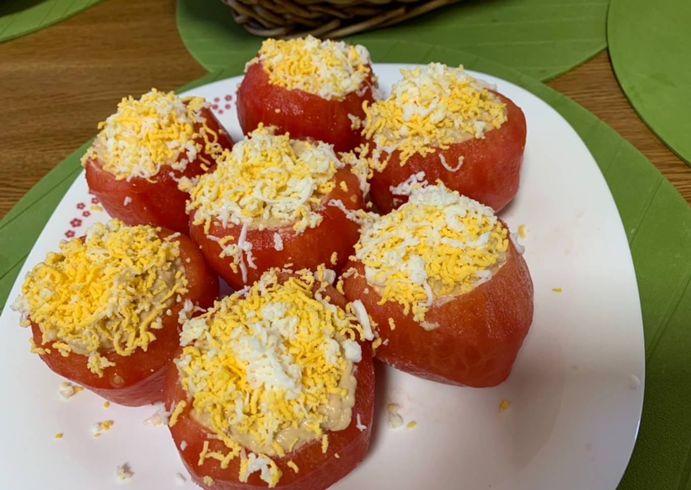 - Rellenamos los tomates decoramos con el huevo cocido rallado y llevamos a la nevera hasta la hora de servir que estén fresquitos.