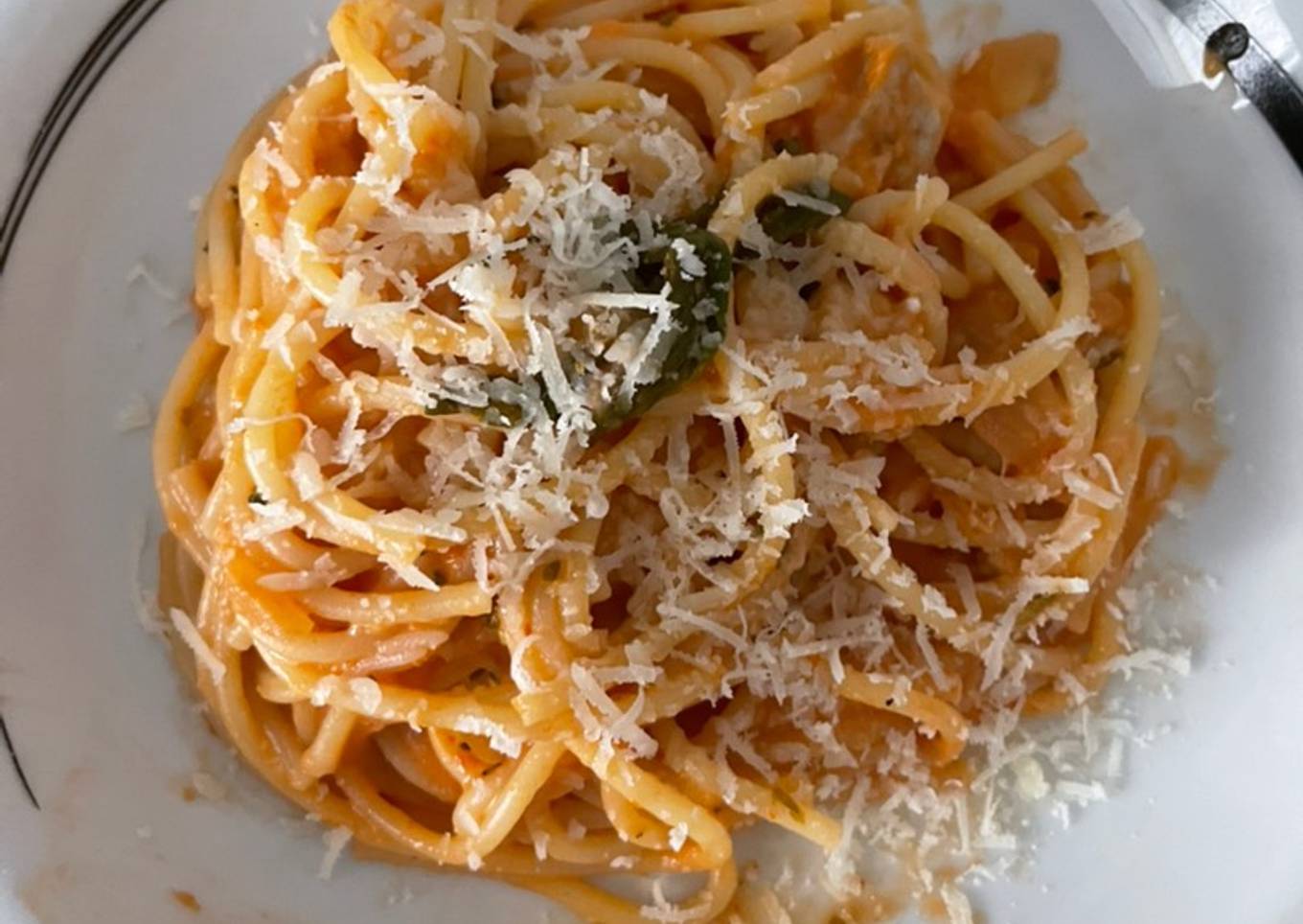 - Cuando los espaguetis estén hechos escurrimos y añadimos a la salsa de tomate y revolvemos.