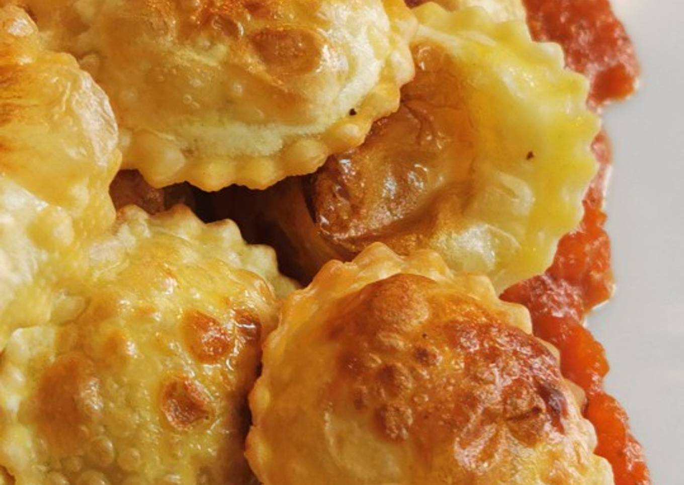 Raviolis Capresi crujientes a la salsa Pomodoro
