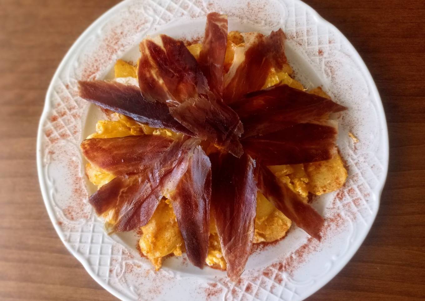 - Por último dispondremos de las lonchas de jamón por encima, espolvorearemos con pimentón y.... Listo para degustar
