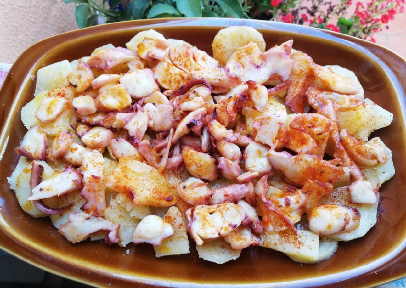 - Cuando la pota est茅 tierna la ponemos encima de las papas en la fuente y le a帽adimos un poco de piment贸n. Por 煤ltimo rociamos la fuente con un poco m谩s de aceite de oliva y listo, ya tenemos una estupenda raci贸n pot贸n a la gallega para compartir. Buen provecho a todos.