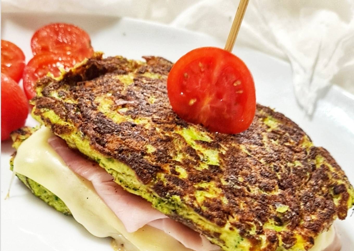 Todas las propiedades del brócoli en un delicioso y rápido sándwich sin harina! Su textura es similar a la de la tortilla pero más crujiente.