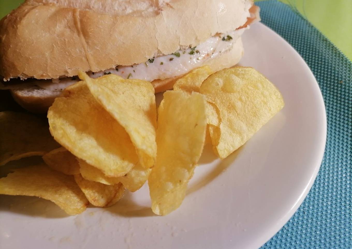 - Montaje: Abrir el pan, colocar 1 loncha de jamón, un filete grande, otra loncha de jamón y otro filete mediano y tapar.