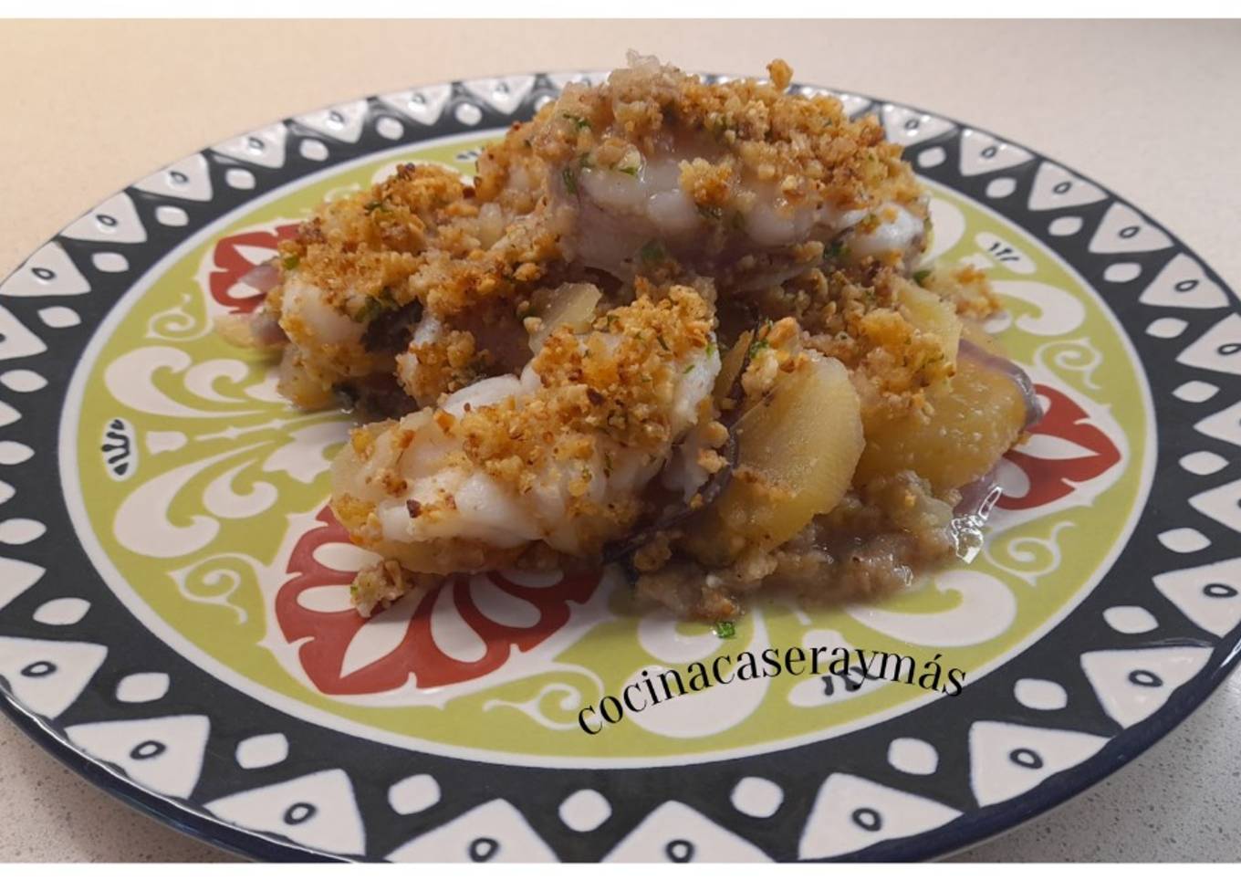 🐟🥔🧅🧄🥖🍷Una recetita de pescado rico, rico, rico😋.